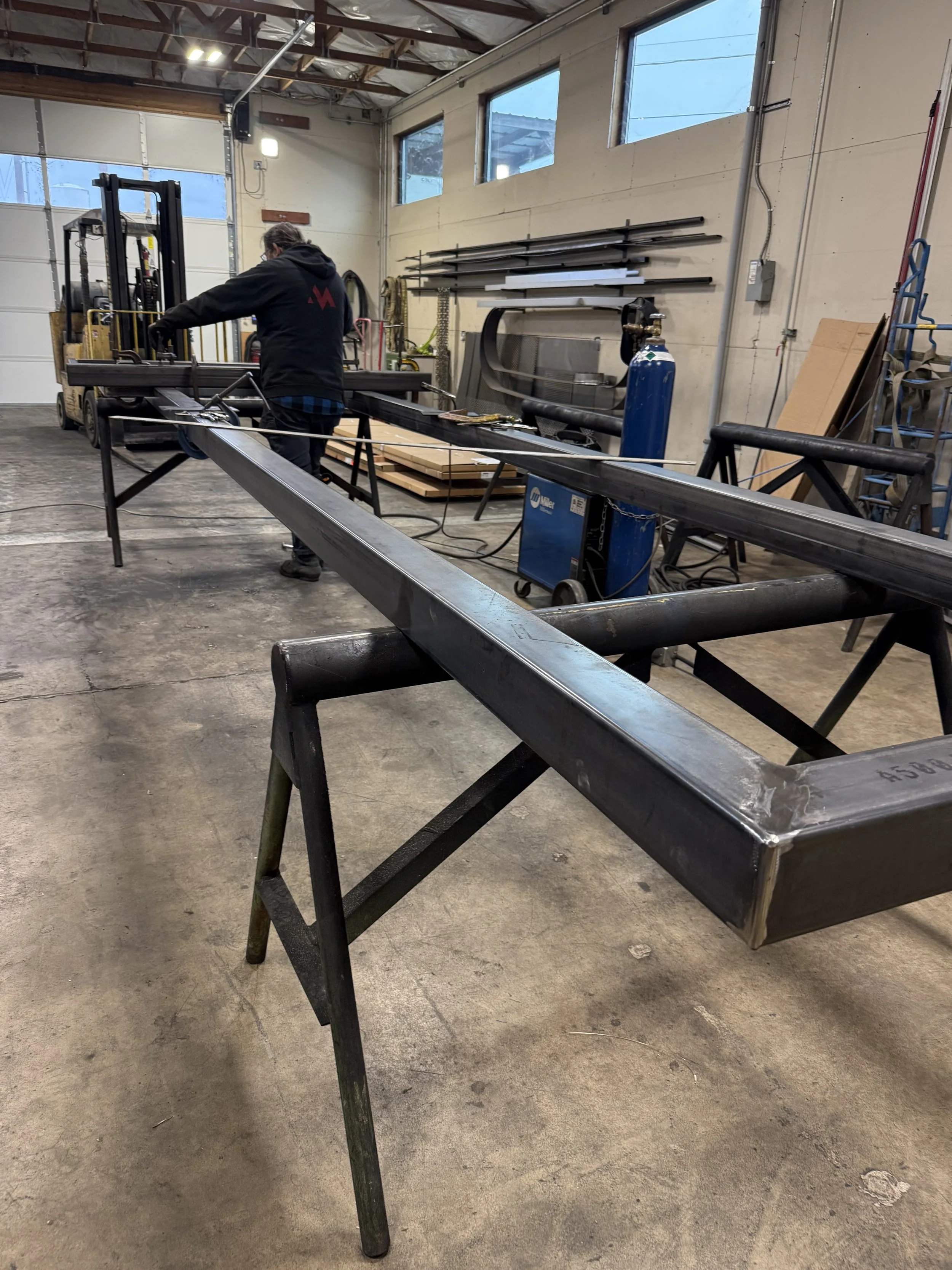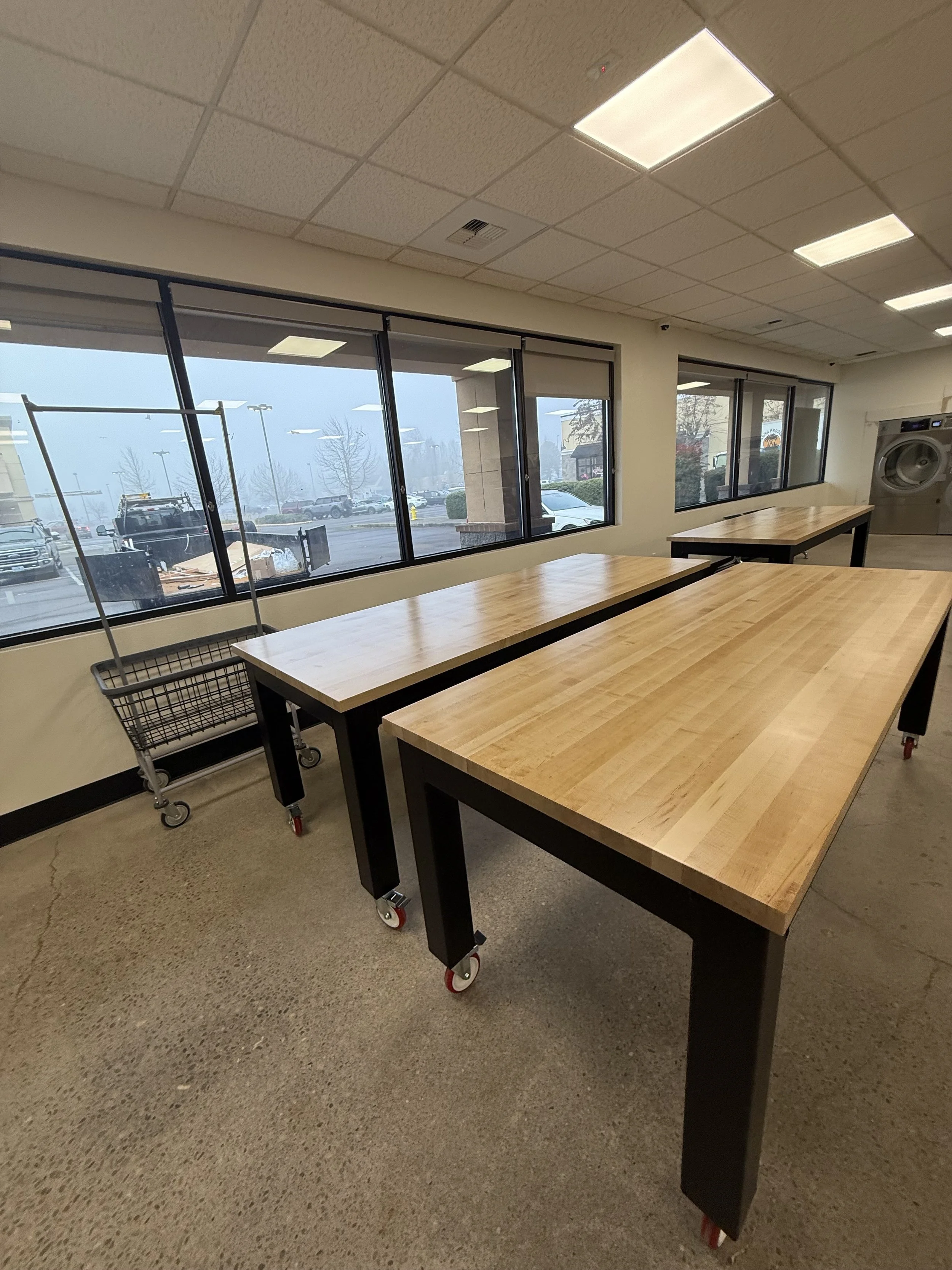 Designed, manufactured and installed 3 custom folding tables with metal base and butcher block top